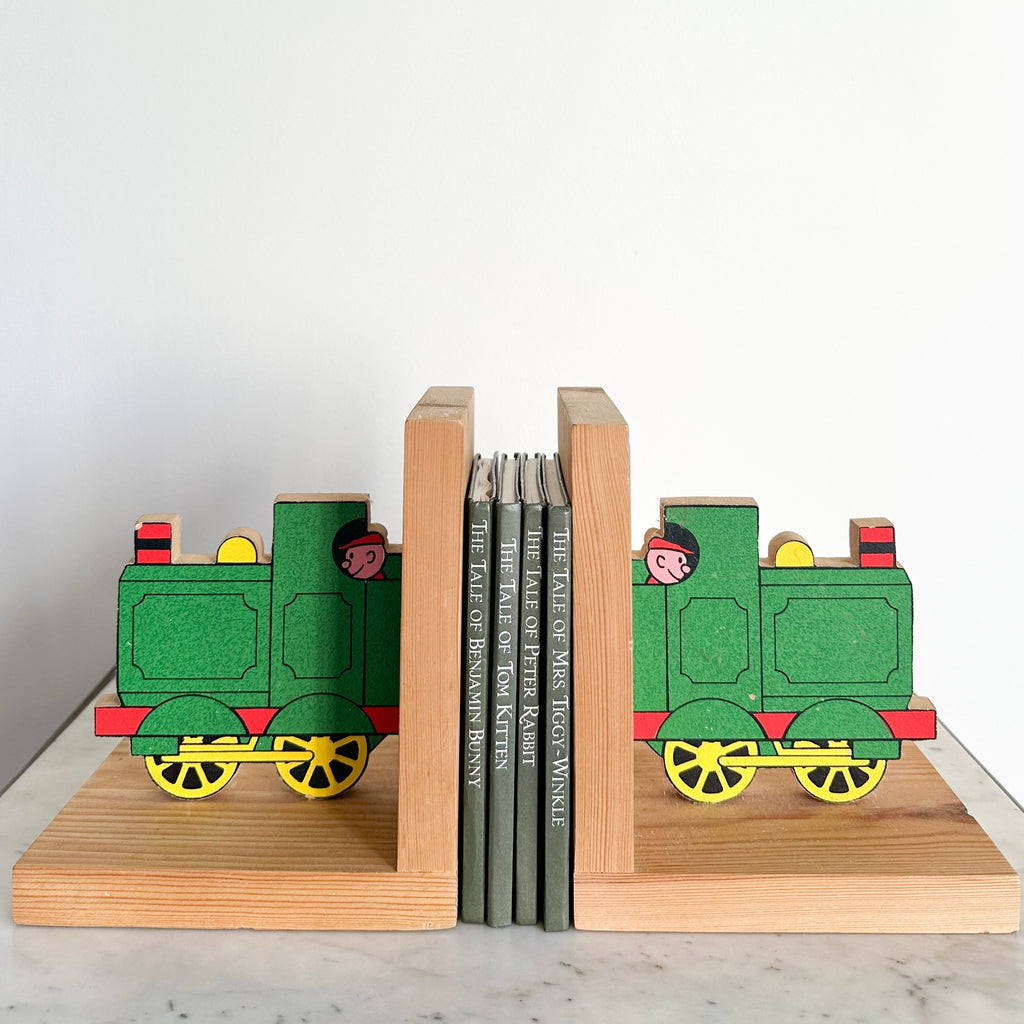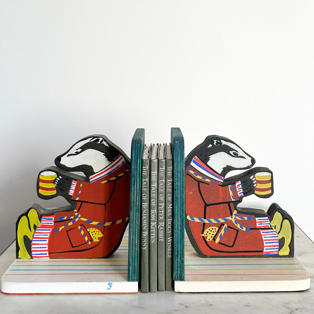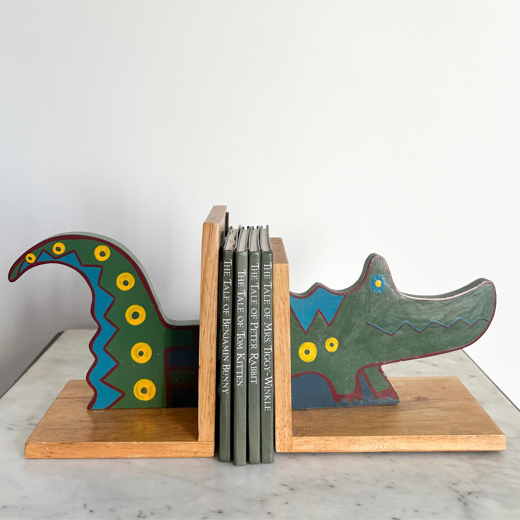 Pair of vintage handpainted wooden bunny rabbit puzzle bookends