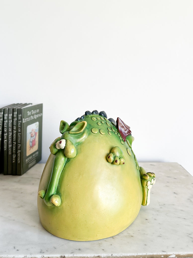 Vintage Italian 1970s ceramic green dragon piggy bank or money box, by Paulo Chiari