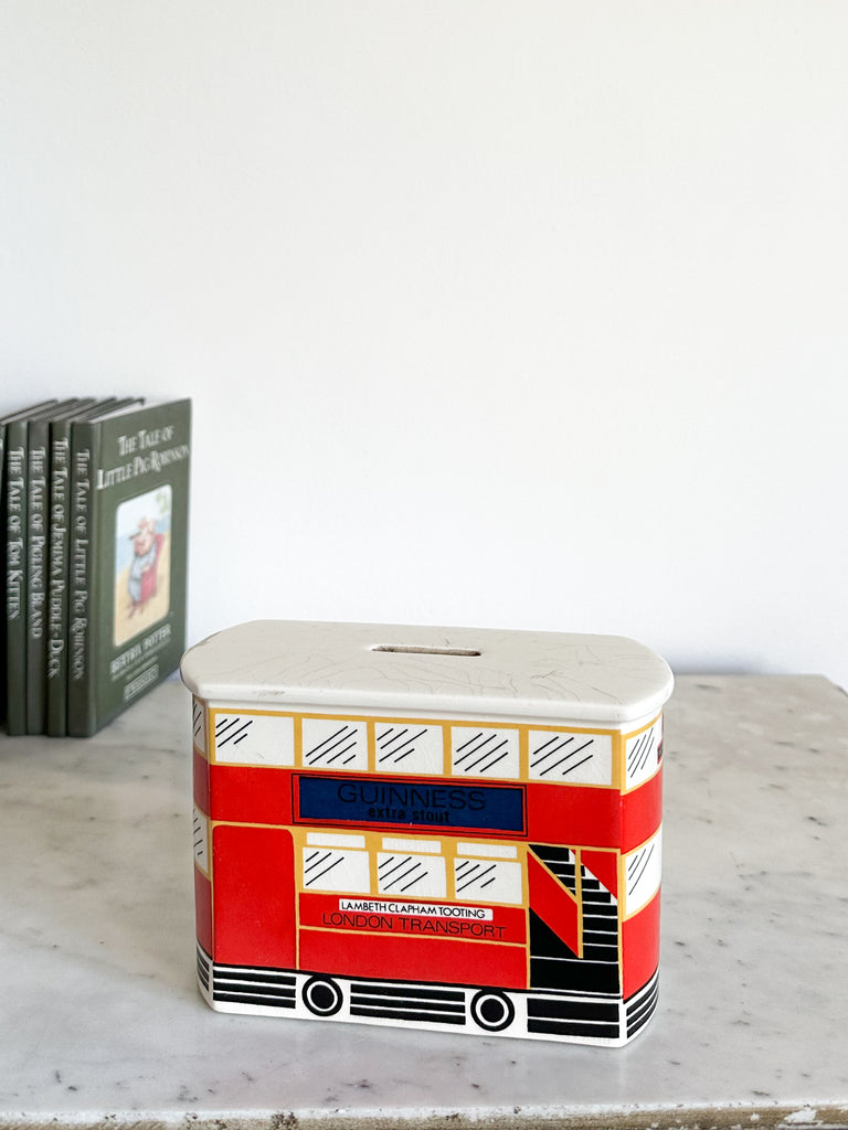Vintage 1960s collectible double decker London bus with ‘Guinness’ advert piggy bank or money box, by Carlton Ware, made in England