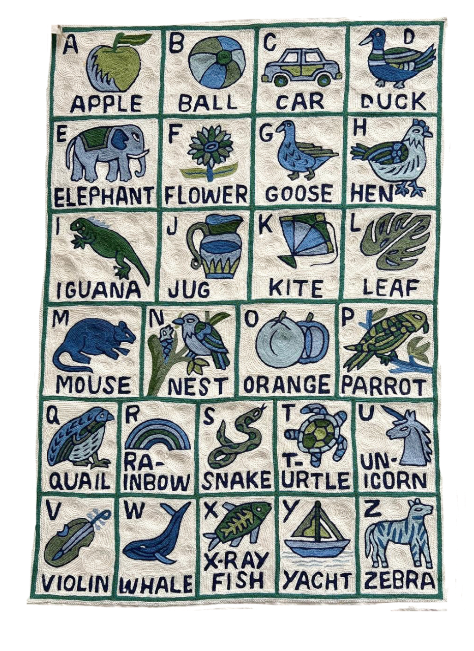 Hand-Embroidered Wool ABC Tapestry for Nursery & Children’s Rooms