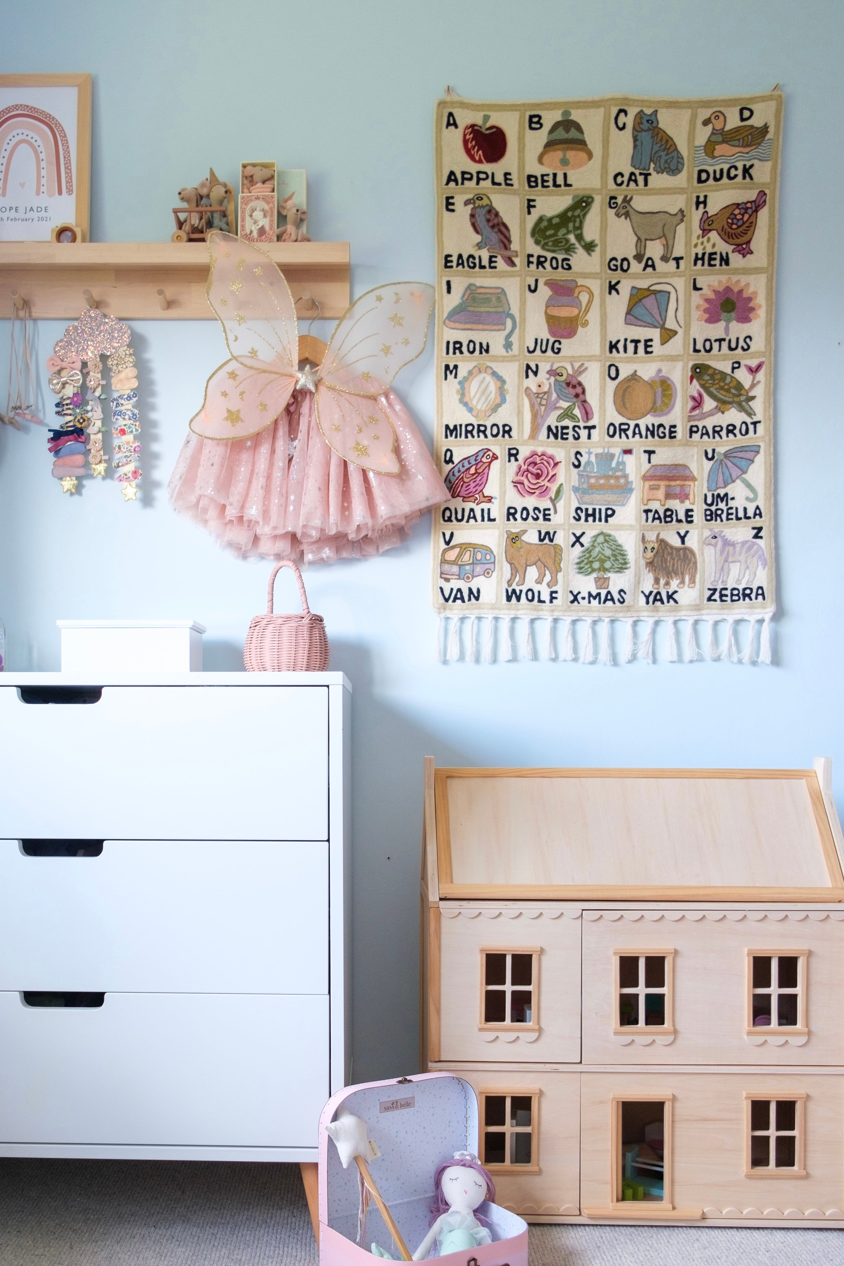 The Marsar handmade alphabet ABC crewel wall hanging tapestry is meticulously hand embroidered from wool in tiny limited batches, where no two pieces are the same.