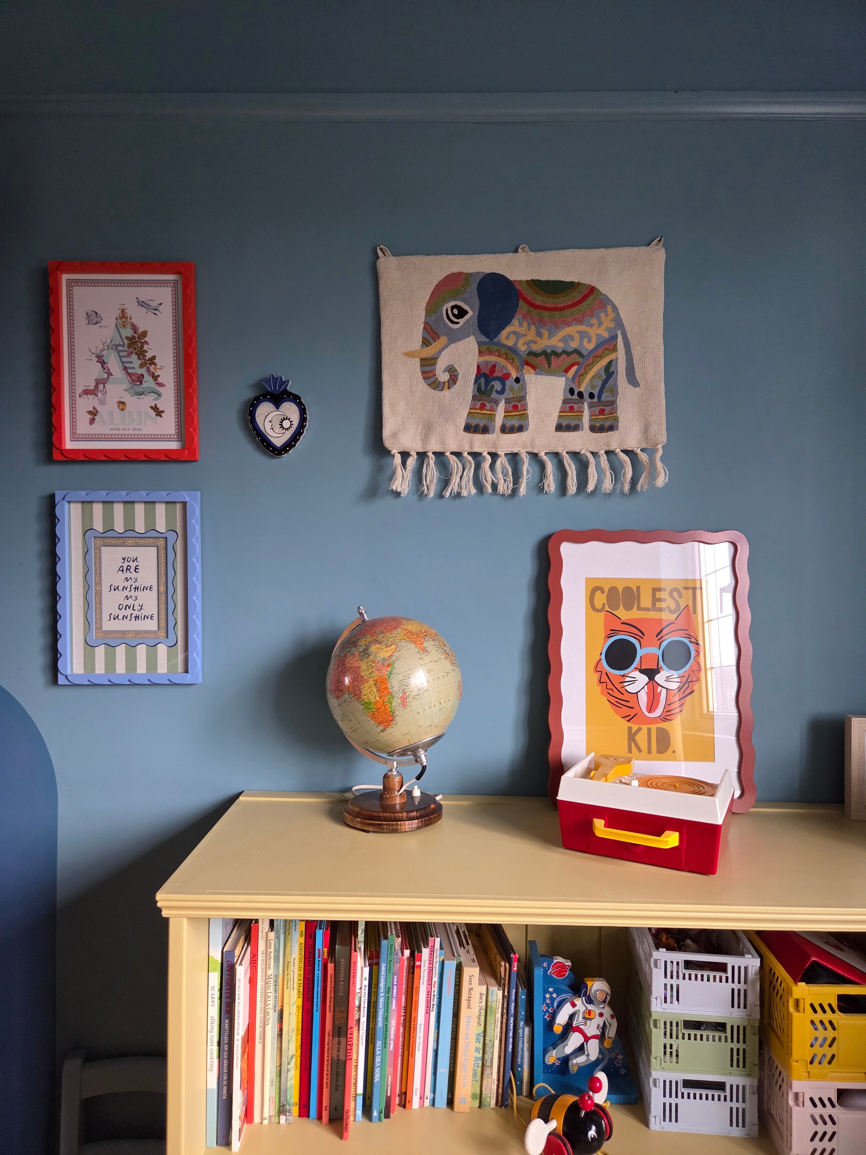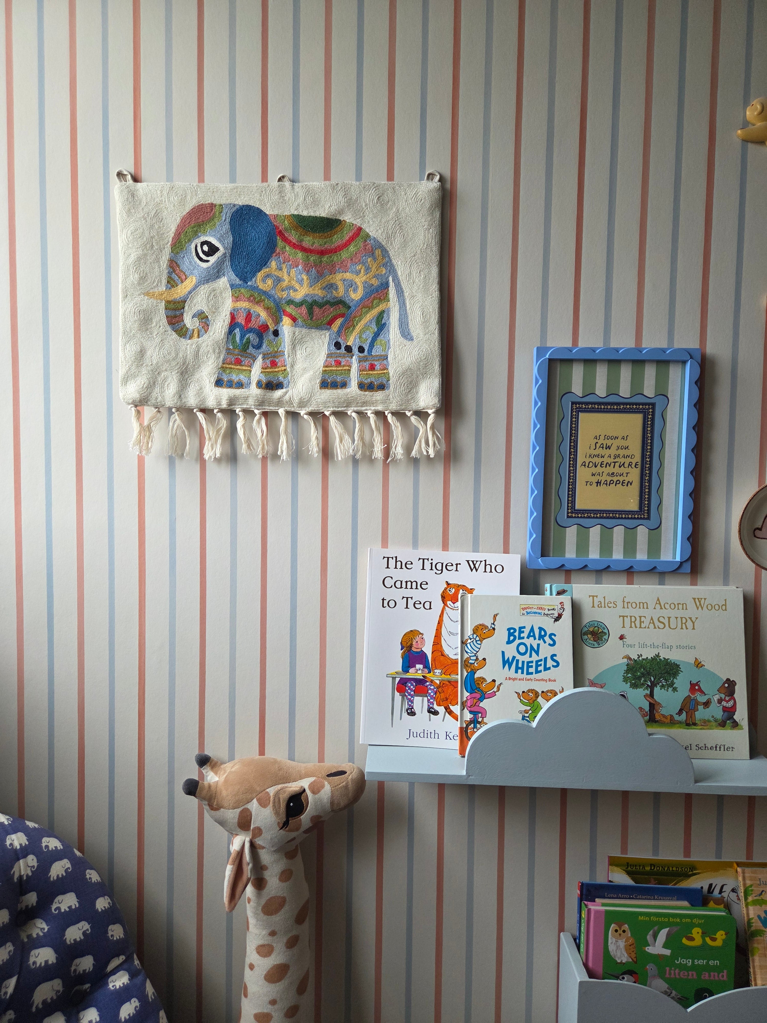 Our folk art Elephant wall-hanging tapestry, part of our new Mini Moppet collection, makes a truly unique heirloom gift — perfect for a new baby, special birthday, or simply “just because.”