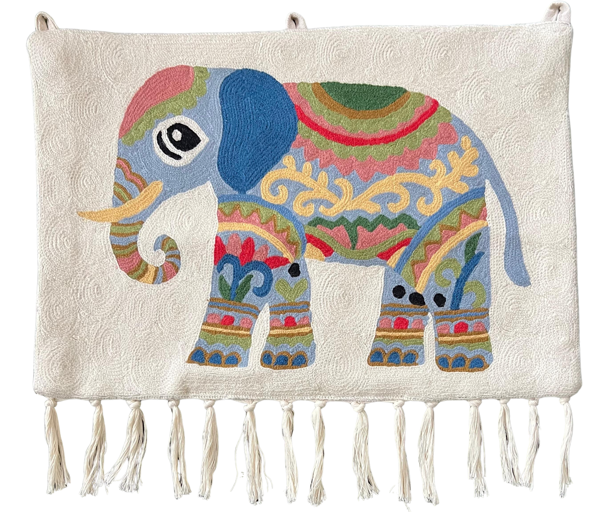 Handmade folk art Elephant crewel wall hanging tapestry | Sumbal