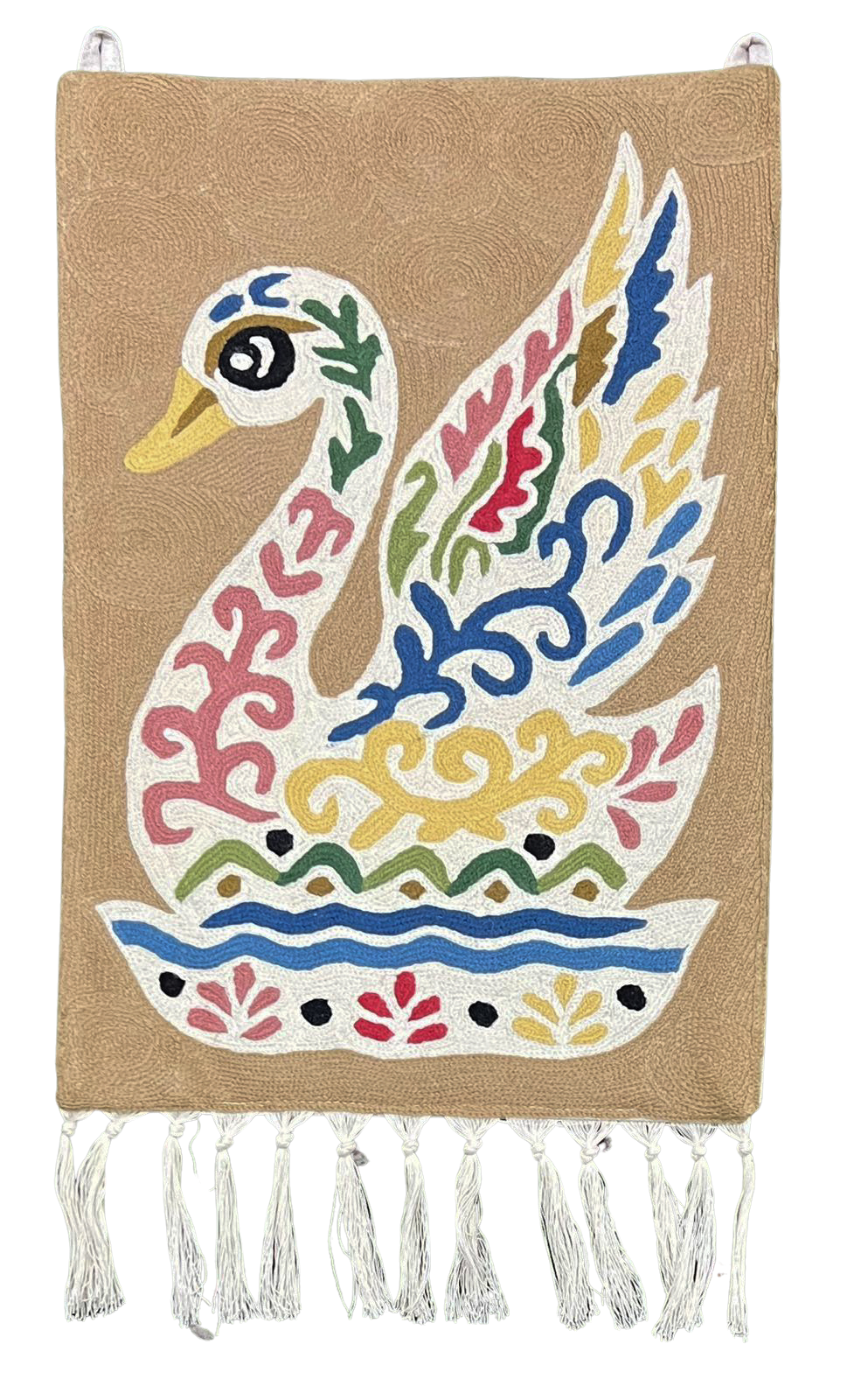Handmade folk art Swan crewel wall hanging tapestry | Sumbal | PREORDER
