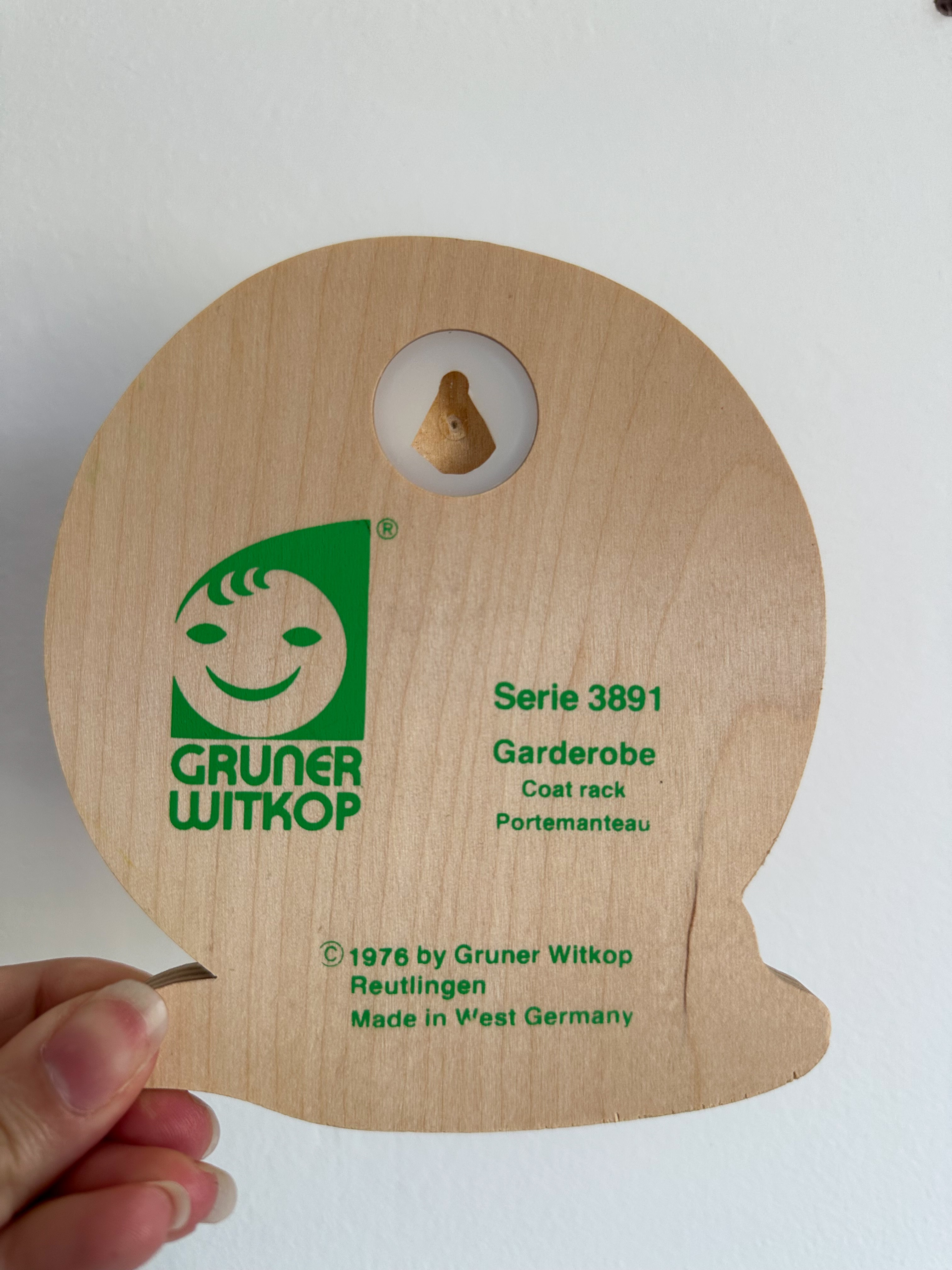Vintage 1976 German Moon wooden peg rail coat hook, by Gruner Witkop