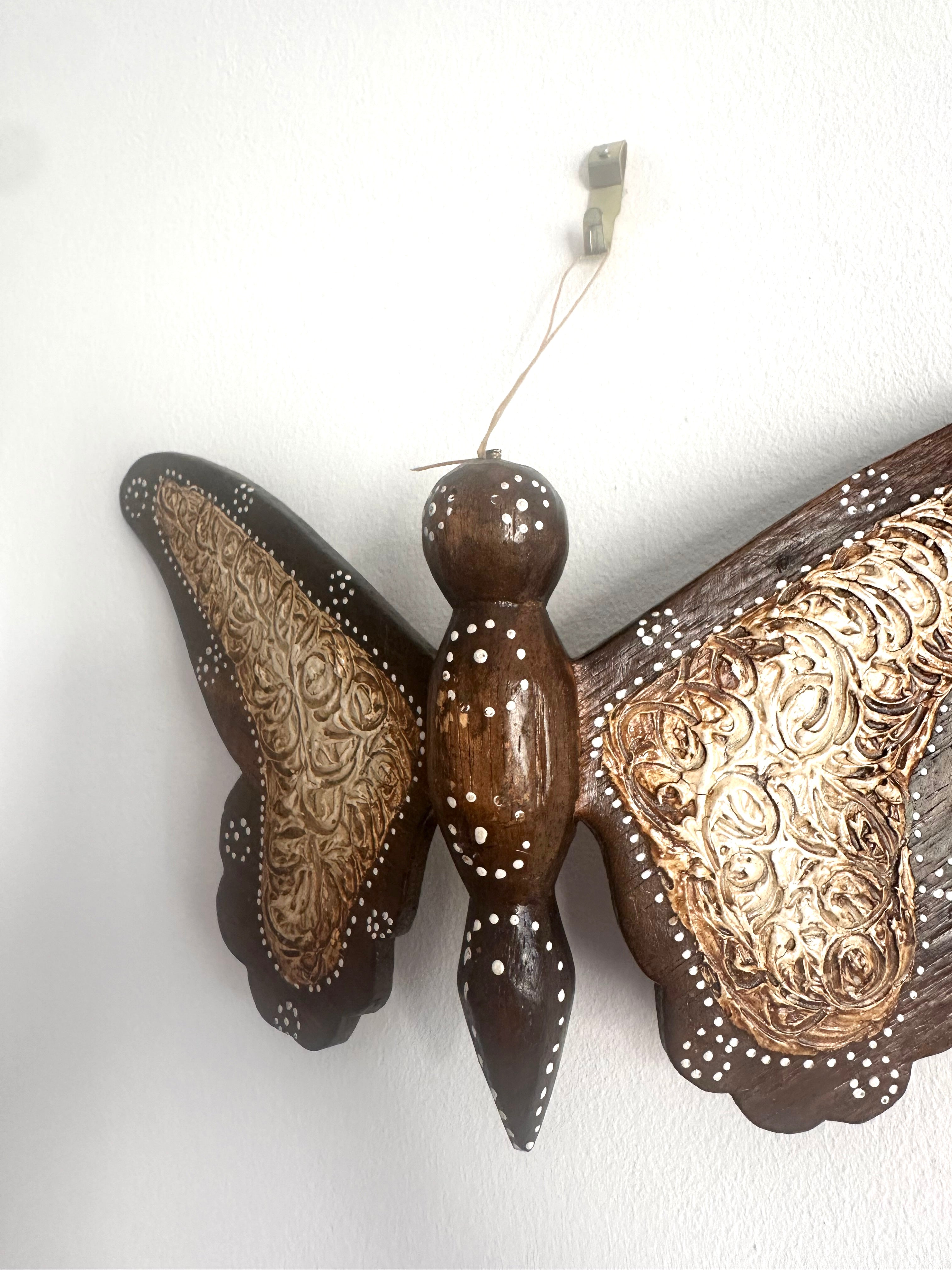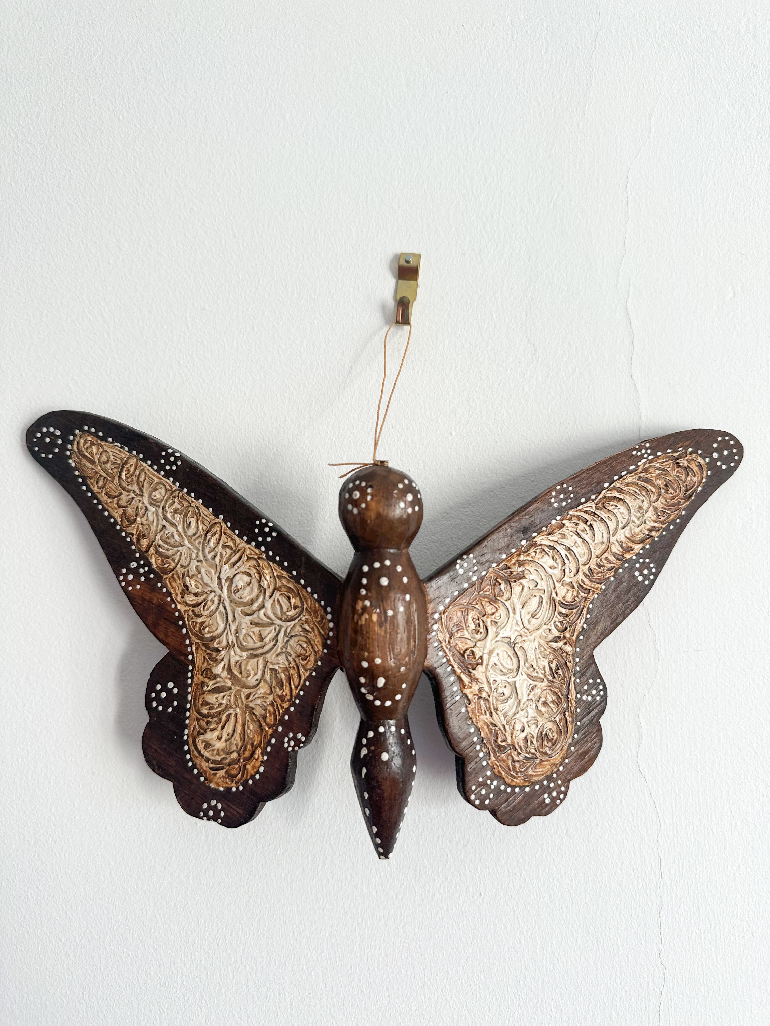 Vintage Aboriginal wooden hand-carved butterfly, wall hanging