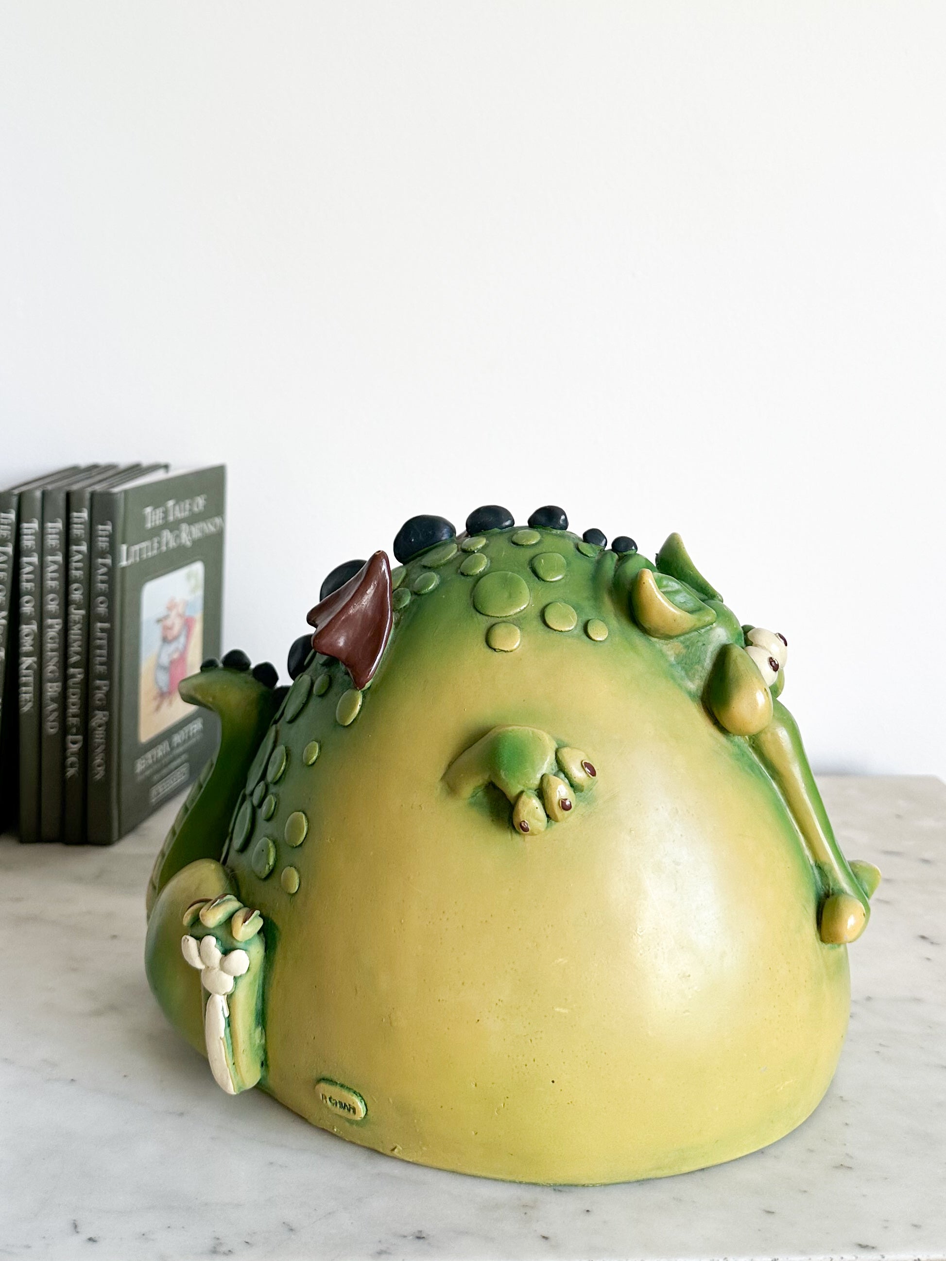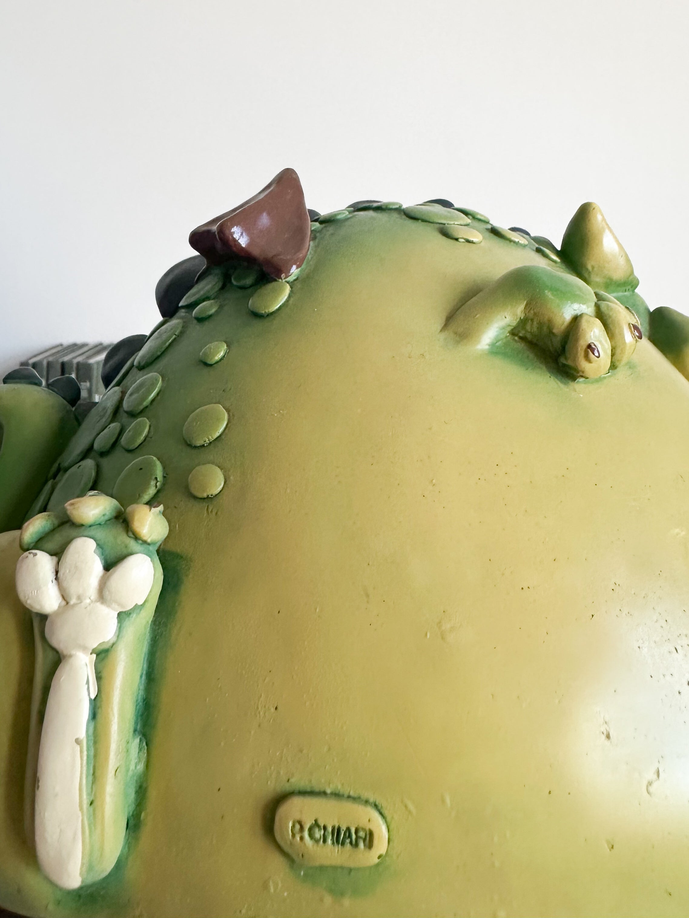 Vintage Italian 1970s ceramic green dragon piggy bank or money box, by Paulo Chiari