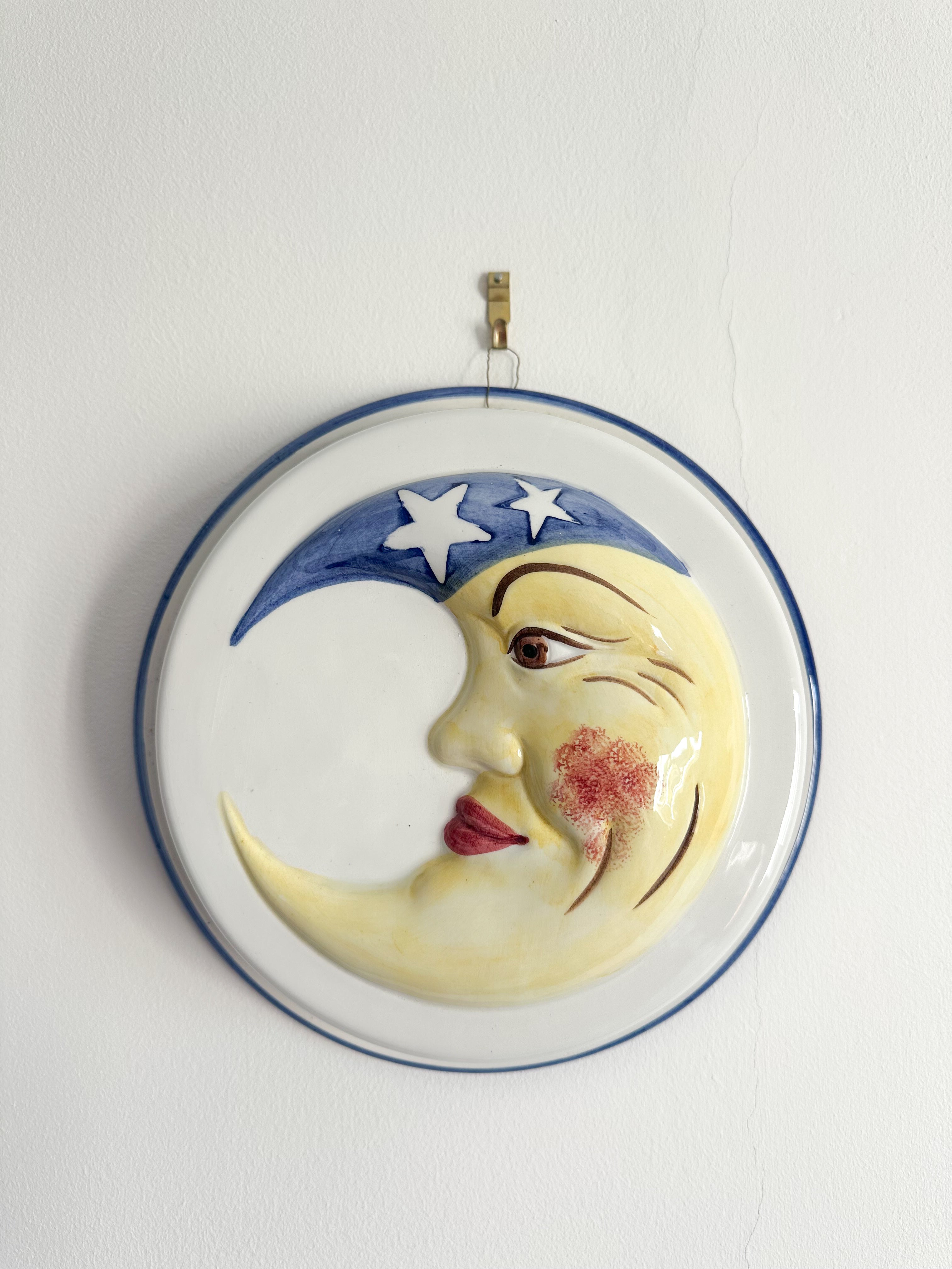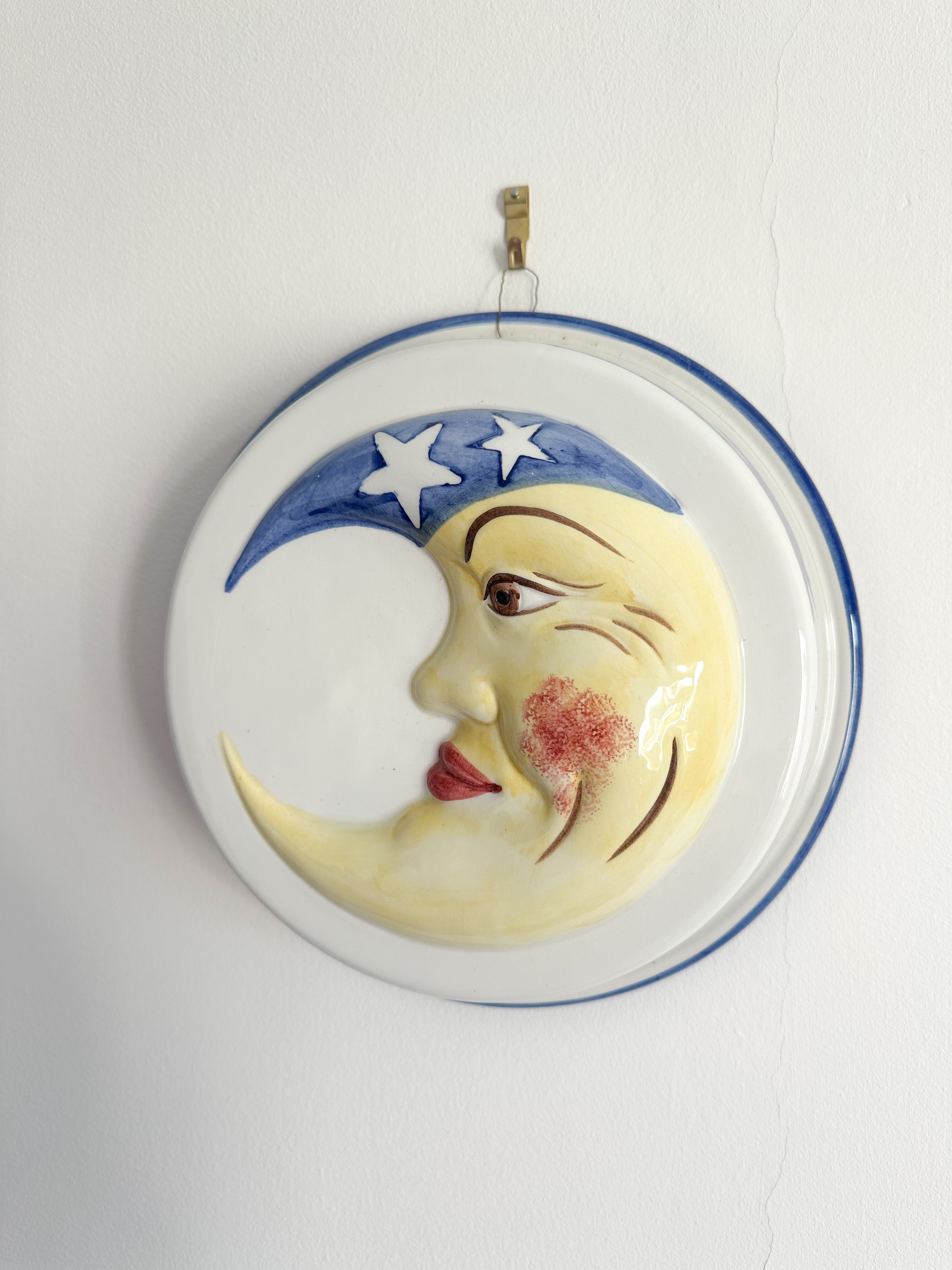 Vintage Italian wall-hanging ceramic celestial moon bowl/plate