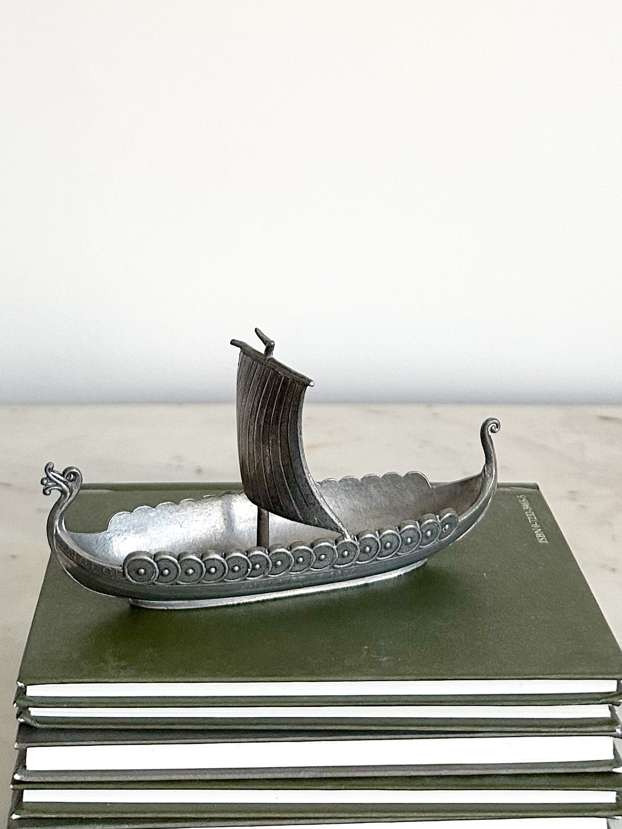 A gorgeous little vintage Norwegian pewter Viking ship. Would make a very special christening gift for a special small someone.