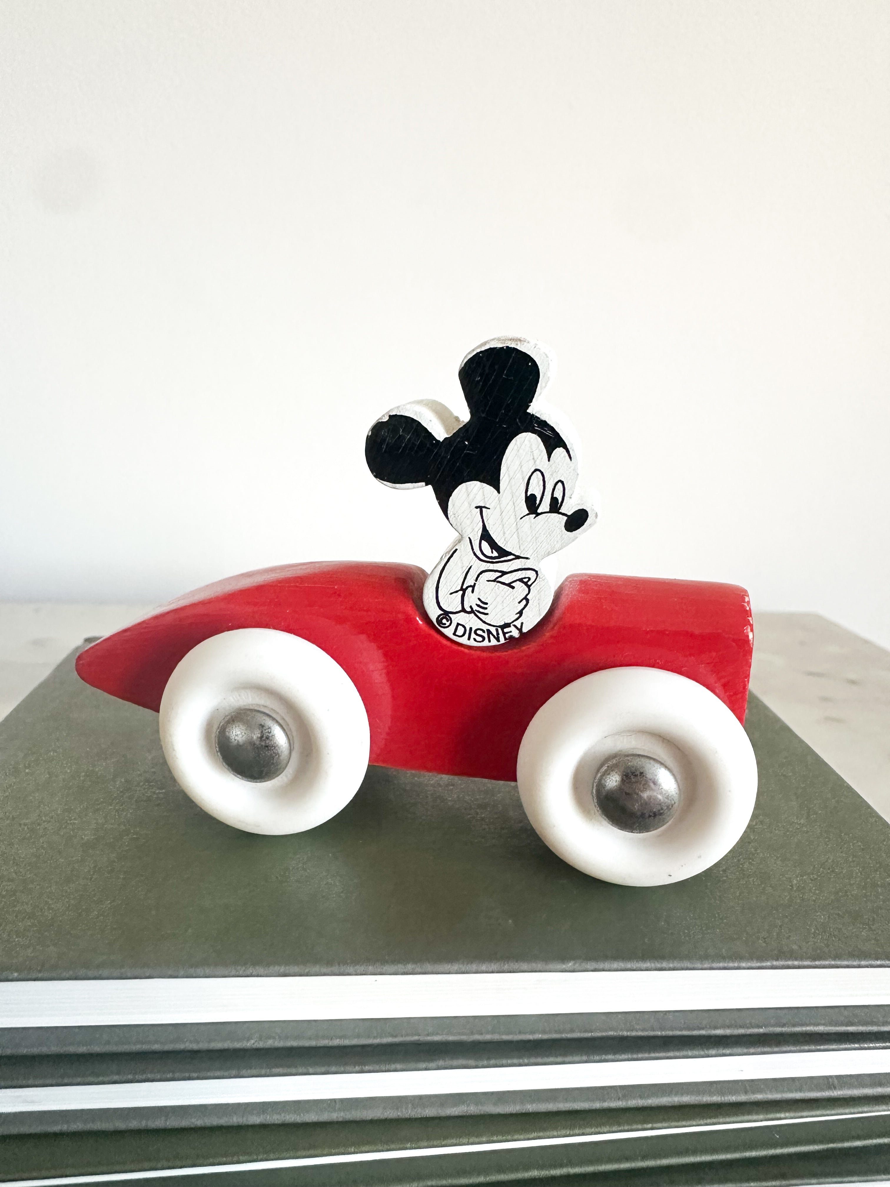 A gorgeous and rare vintage wooden MIckes Mouse in his car. 8cm long